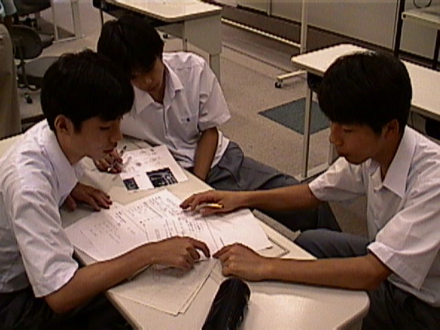 Name: Our names are Shun and Ken. School year: We are in the first year of high school. Home city: We are in Oita. Field of study: We are in the semi-advanced general course. |